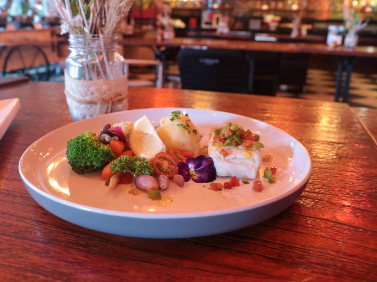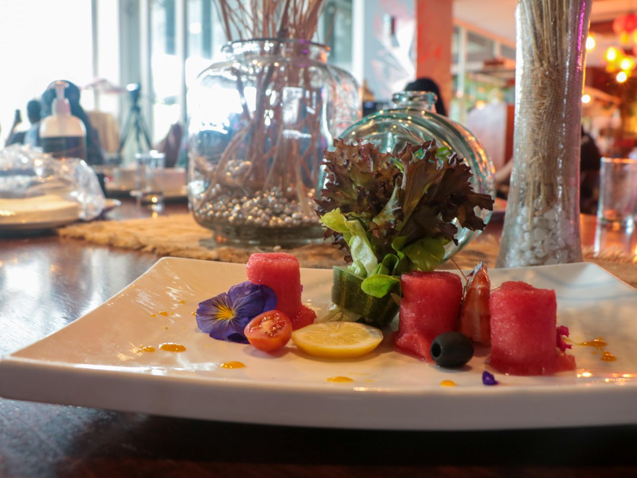 Watermelon Shrimp Salad sendiri merupakan cold salad yang bahan nya terdiri dari buah semangka, udang yang sudah direbus dan dicampur dengan beberapa sayuran lain seperti iceberg lettuce, oak lettuce, aragula, dan lolorosso. Lalu untuk menu Poached Snapper dengan bahan dasar ikan kakap ini juga direbus kemudian di sajikan dengan saus spesial lalu didampingi dengan aneka sayuran yang sudah direbus dan tambahan mashed potato sebagai karbohidrat.