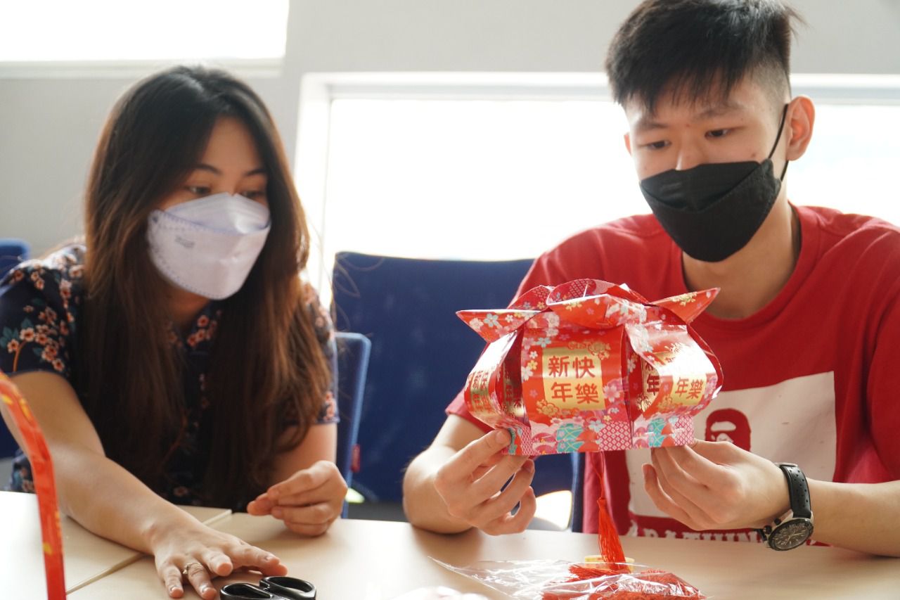 Dosen dan mahasiswa saling berkolaborasi dalam acara yang berlangsung sehari itu dengan membuat aneka ornament Imlek. Mulai dari lampion hingga hiasan dinding yang terbuat dari amplop angpao dan kertas origami.