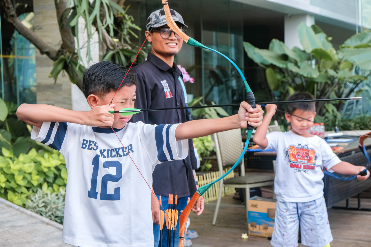 Untuk keluarga yang ingin menjajal aktivitas luar ruang, Vasa Hotel juga menyediakan kelas panahan di area Aviosa Deck. Kegiatan ini berlangsung setiap Sabtu pukul 15.00–17.00 WIB dan Minggu pukul 10.00–12.00 WIB, terbuka untuk semua tamu yang menginap maupun bersantap di outlet F&B hotel.