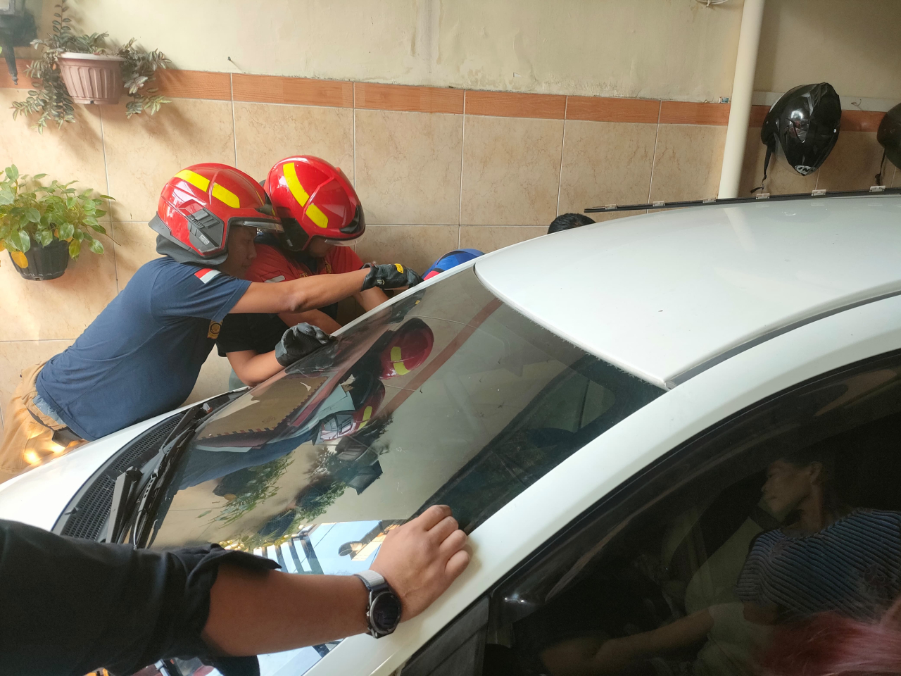 Balita 22 Bulan Terkunci di Dalam Mobil di Surabaya, Damkar Lakukan Evakuasi