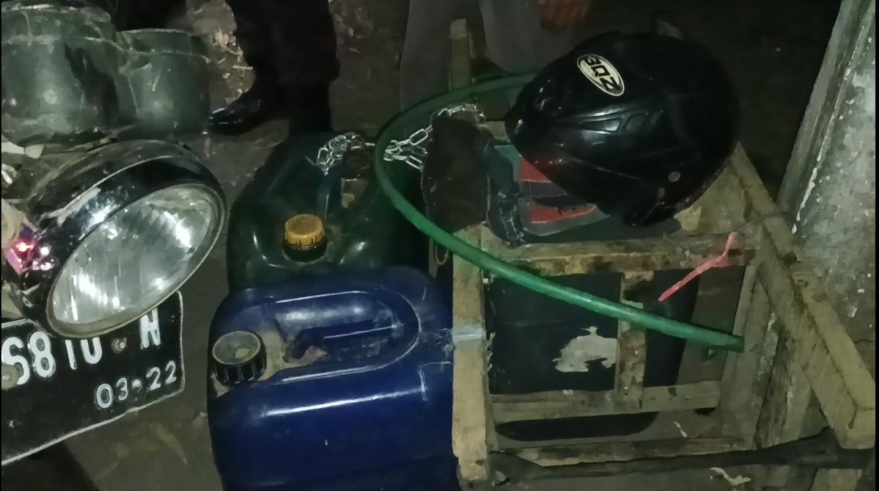 Barang bukti yang diamankan berupa 1 mobil Daihatsu Sigra P-1259-LB, 5 motor, 5 jeriken 20 liter, 2 jeriken 5 liter, 1 drum 25 liter, 1 galon air mineral, 4 selang bensin, 2 corong plastik, dan 120 liter BBM jenis Pertalite.