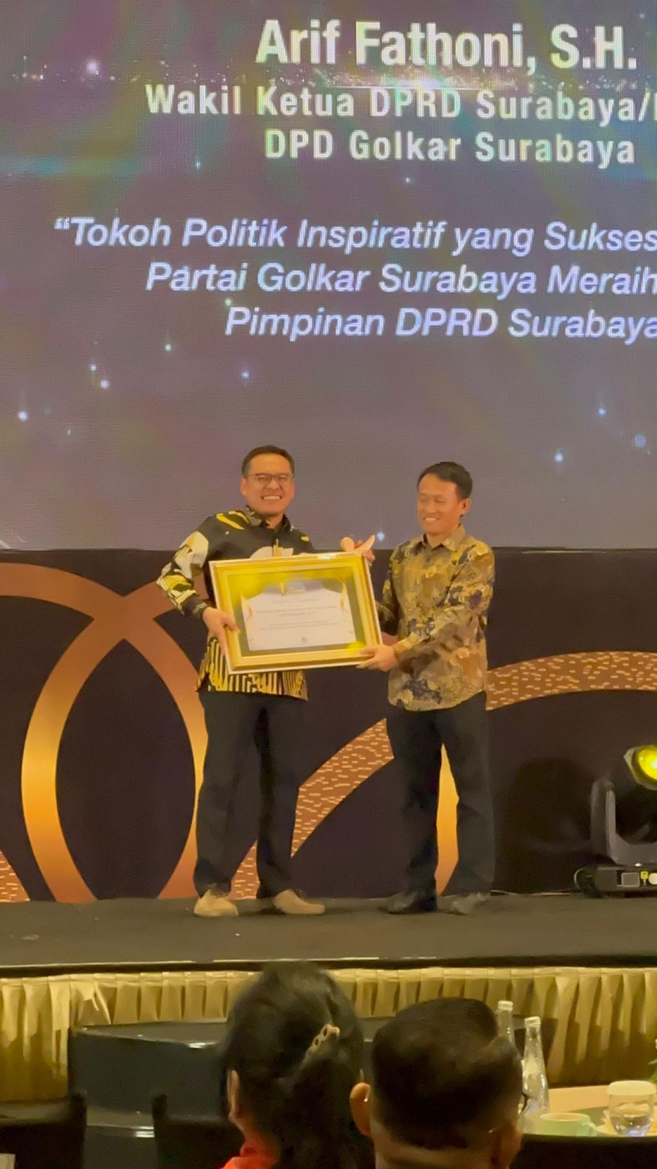 Fathoni mengungkapkan, penghargaan tersebut merupakan bentuk apresiasi terhadap kerja kolektif kader dan simpatisan Partai Golkar Surabaya. Ia menegaskan penghargaan ini bukan sekadar simbol, melainkan penyemangat untuk terus menghadirkan politik yang menyenangkan, khususnya bagi generasi muda.