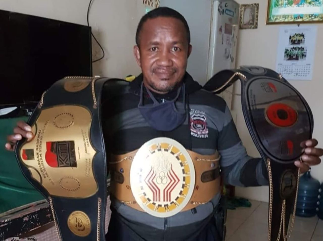 Johanes Leonard Moa dengan bangga menunjukkan sabuk Kejuaraaan Nasional yang pernah diraihnya dan tetap setia menyimpannya selama 30 tahun meskipun selama ini tidak cukup mendapatkan apresiasi dari prestasi-prestasi yang telah diraih.