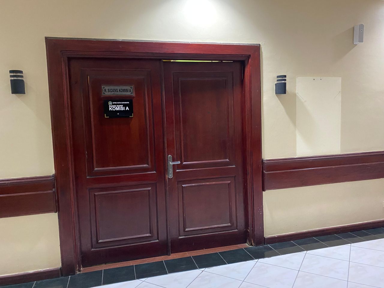 Menariknya, papan nama anggota yang biasanya terpasang di setiap ruang komisi dicopot. Papan itu biasanya berfungsi untuk menandai kehadiran anggota dewan.