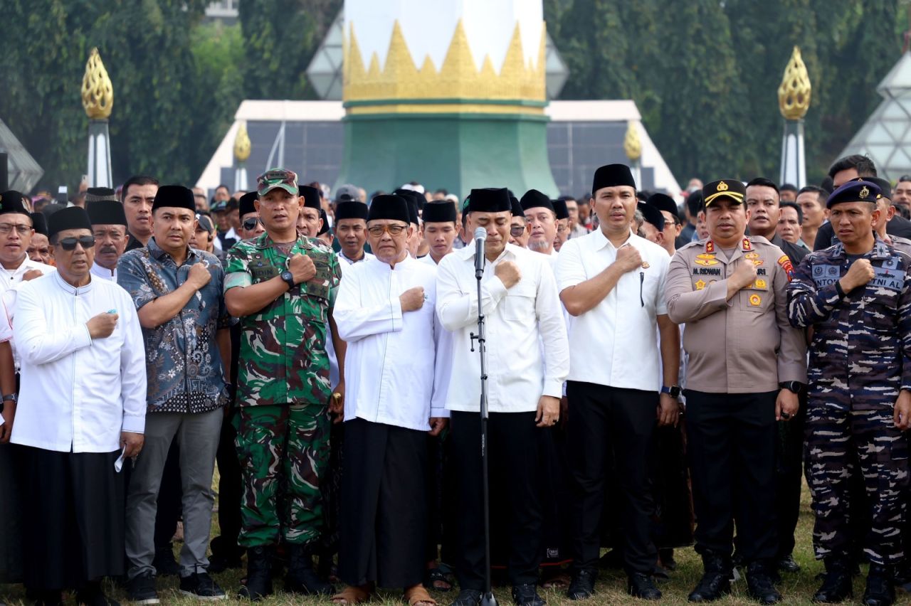 Wali Kota Surabaya, Eri Cahyadi bersama Forkopimda menyaksikan langsung pembacaan ikrar.