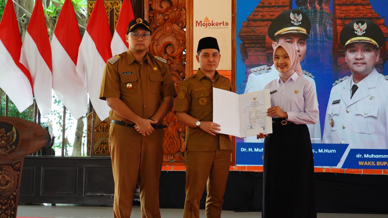selalu.id - Bupati Mojokerto Muhammad Albarraa melantik 69 Pegawai Pemerintah dengan Perjanjian Kerja (PPPK) tahap II tahun anggaran 2024 di Pendopo Graha Maja Tama (GMT), Selasa (16/9/2025).