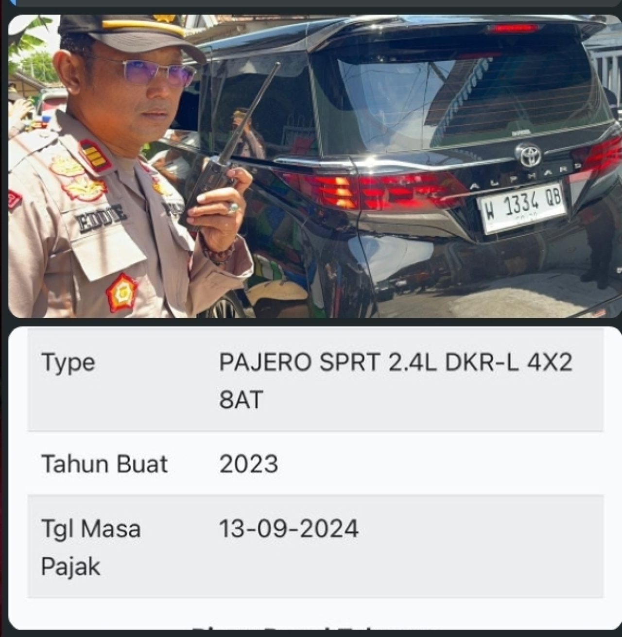 Hasil penelusuran menyebut nopol W 1334 QB tercatat untuk mobil Mitsubishi Pajero, bukan Toyota Alphard. Data juga menunjukkan kendaraan itu terdaftar sebagai mobil rental. Temuan ini menimbulkan pertanyaan publik, sebab gubernur seharusnya mendapat fasilitas kendaraan dinas untuk menunjang aktivitas resmi.