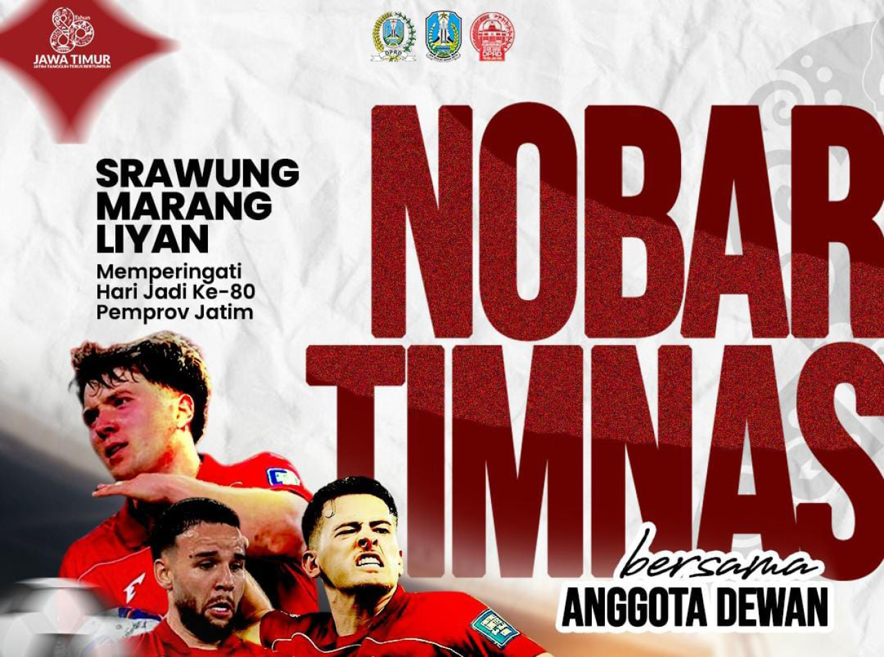 selalu.id- Sekretariat Dewan Perwakilan Rakyat Daerah (DPRD) Jawa Timur menggelar nonton bareng (nobar) pertandingan Kualifikasi Piala Dunia Ronde 4 antara Tim Nasional Indonesia melawan Arab Saudi. Kegiatan ini berlangsung di halaman Gedung DPRD Jawa Timur, Rabu malam (8/10/2025), mulai pukul 23.00 WIB.