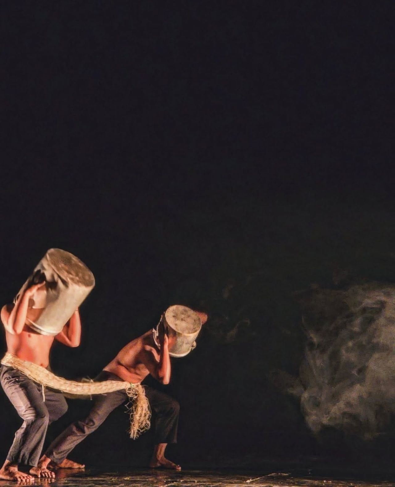 Pertunjukan dibuka dengan suasana hening. Dalam gelap gulita terdengar rapalan zikir yang perlahan menjalar ke seluruh ruang. Dari kegelapan itu muncul sosok makhluk yang terperangkap di dalam jala, alat tradisional penangkap ikan yang menjadi simbol perjalanan tokoh bernama Darim dalam pencarian jiwanya.