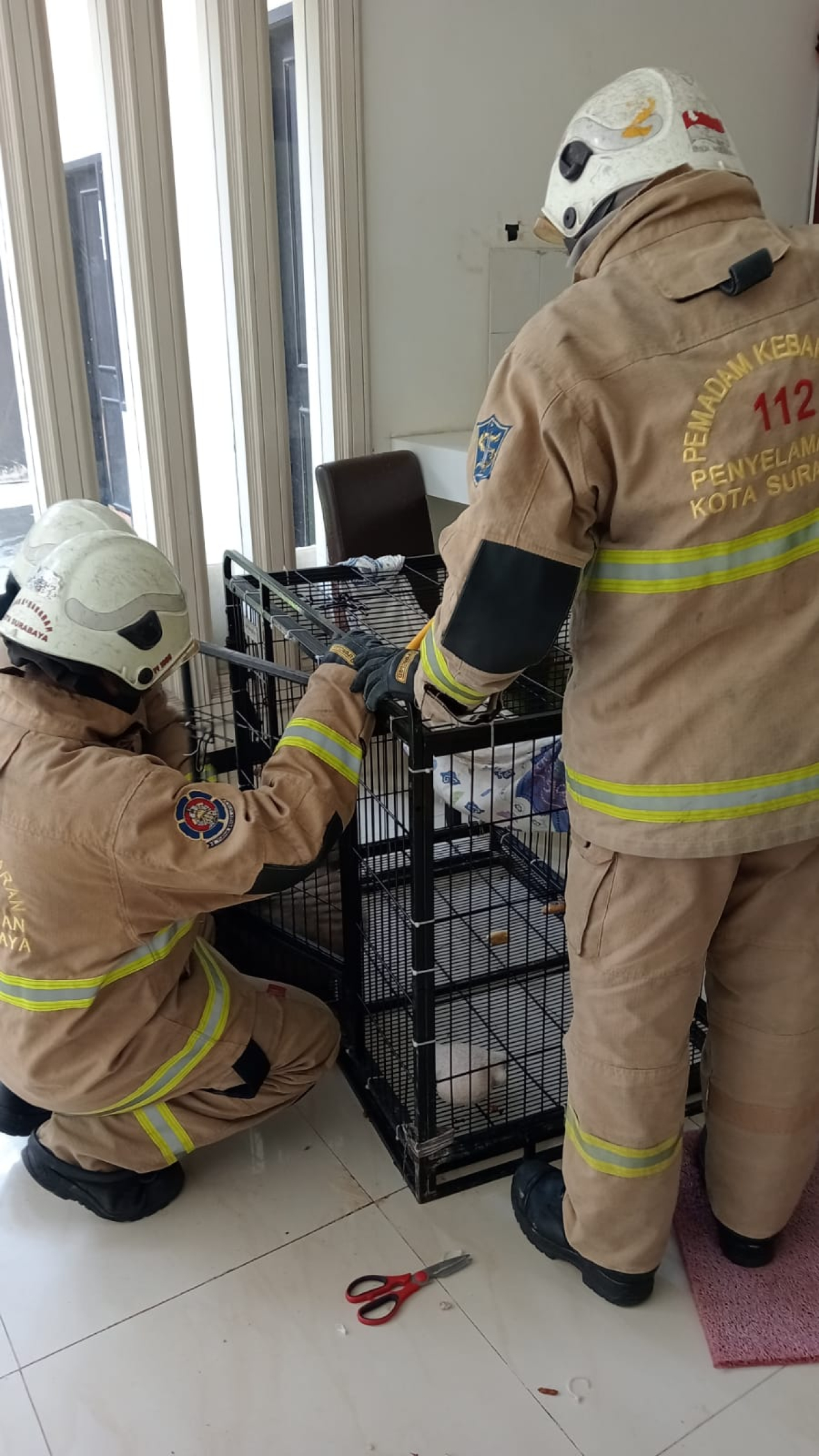 Komandan Regu Peleton II Rayon III Pos Damkar DPKP Surabaya Rio Afandi mengatakan timnya menemukan owa berada di lantai dua. Evakuasi dilakukan menggunakan jaring dan karung hingga satwa tersebut berhasil dimasukkan kembali ke kandangnya. “Kami tidak tahu awalnya itu satwa dilindungi, hanya dipanggil untuk evakuasi,” ujarnya Kamis 20 November 2025.