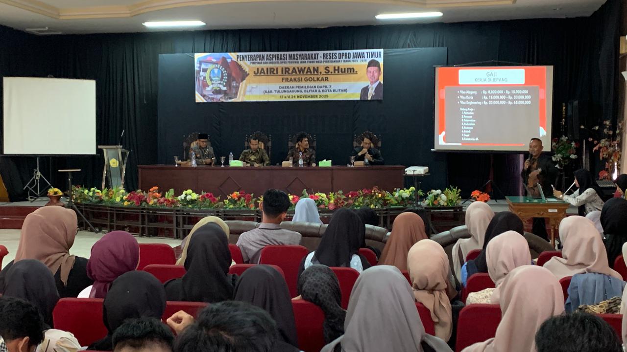 selalu.id - Wakil Ketua Komisi E DPRD Jawa Timur Jairi Irawan melakukan kegiatan reses di STIKES Hutama Abdi Husada Kabupaten Tulungagung pada 21 November 2025. Kegiatan ini menggandeng civitas akademika kampus, LPK Hikari Blitar, dan Bank UMKM Jawa Timur.