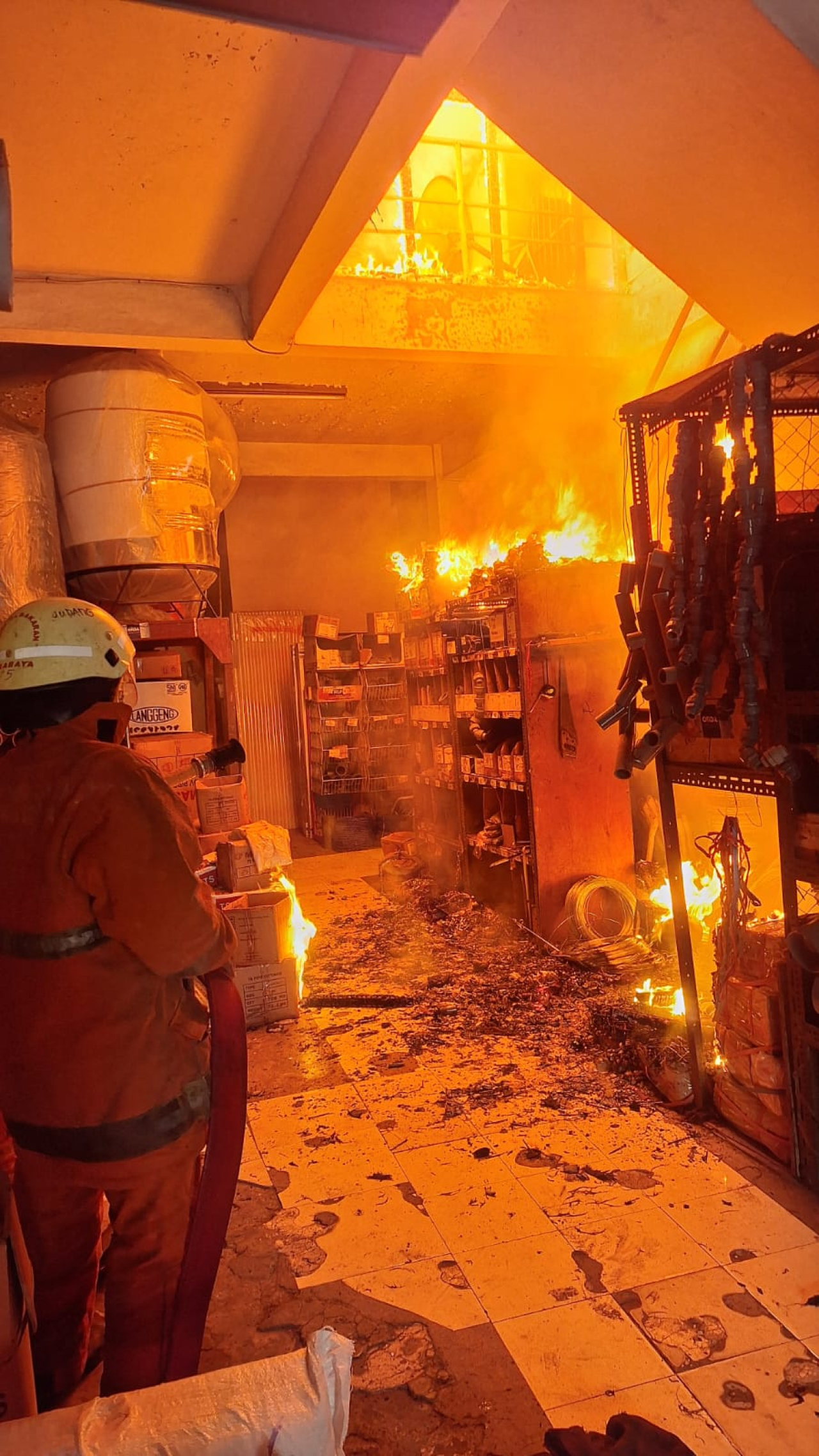 Bambang Subagio selaku saksi mengatakan gudang yang terbakar berada di belakang toko dan digunakan sebagai mess pegawai. “Saat itu api sudah besar, kami minta bantuan damkar. Untungnya gak ada korban, karena gudang kosong pegawai sedang bekerja di toko utama,” ujarnya.