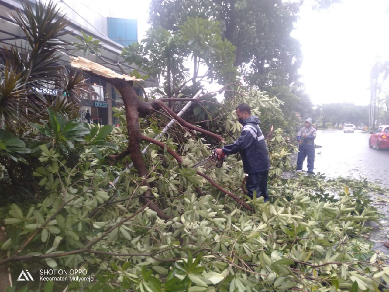 "Tadi sempat macet karena memang soal pohonya di jalan semua, makanya tadi itu priotaskan yang dijalan dulu," jelasnya.