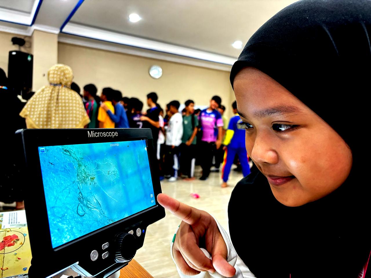 Dalam sesi praktik menggunakan mikroskop portabel, siswa menemukan 19 partikel mikroplastik dalam 1 liter air hujan, terdiri dari 13 serat (dari serpihan ban) dan 6 filamen (dari pembakaran sampah plastik tipis seperti kantong kresek dan sedotan). Selain itu, Zhafran Alexander, siswa kelas 5, menemukan 28 partikel mikroplastik dalam 50 ml air panas yang dibungkus gelas kertas, setelah mengetahui gelas tersebut dilapisi plastik.
