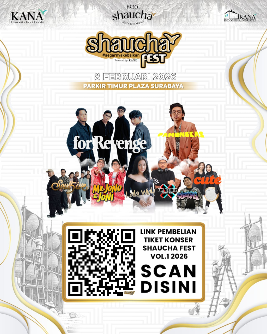 selalu.id - Perhelatan akbar bertajuk "Shaucha Fest 2026" akan digelar di Parkir Timur Plaza Surabaya pada Minggu, 8 Februari 2026 mendatang. Acara ini akan memadukan kegiatan jalan sehat (funwalk) berskala besar dengan konser musik yang menghadirkan deretan artis nasional seperti For Revenge, Pamungkas, Mr. Jono & Joni, Lala Widy, dan banyak pendukung acara lainnya.