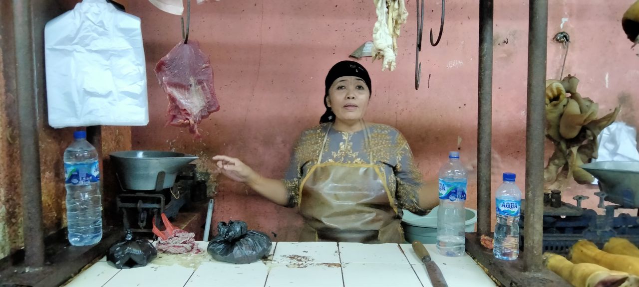 Umi Saadah (55) salah satu pedagang daging, mengatakan harga jual dagingnya masih normal tidak ada kenaikan.