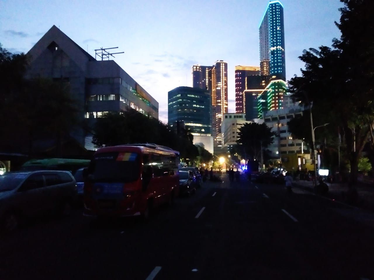 Tak hilang akal, buruh menyalakan lampu handphone mereka masing-masing untuk penerangan. aksi tetap dilanjutkan.