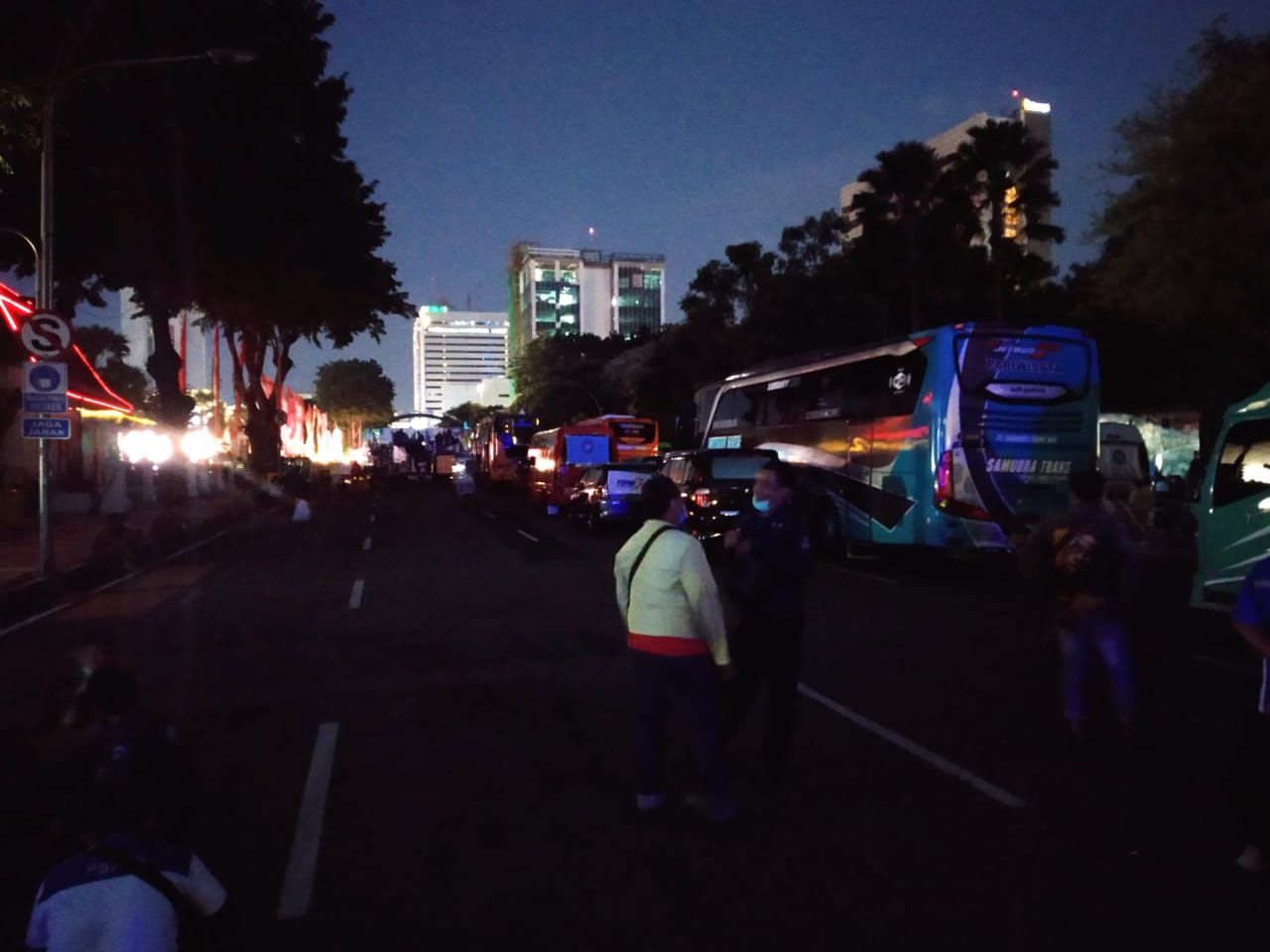 Foto Aksi Demo Buruh di Grahadi Malam Hari dengan Lampu PJU Mati