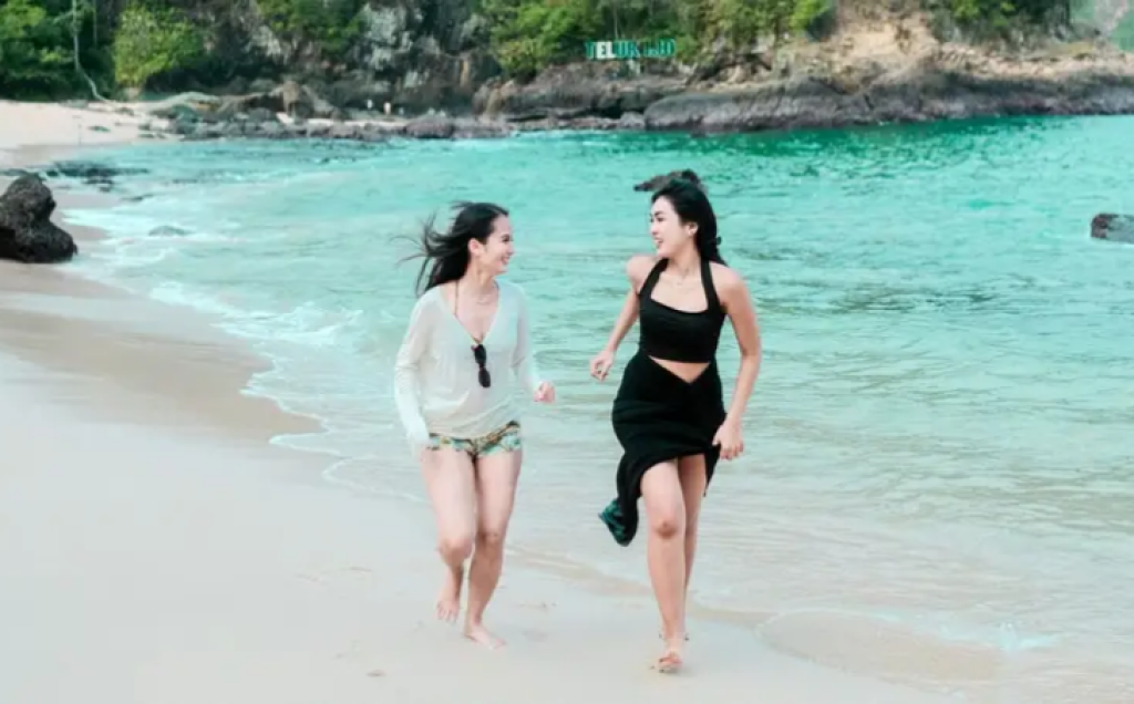 Daya Tarik: Air laut yang berwarna hijau toska menjadi daya tarik utama, memberikan kesan eksotis yang jarang ditemukan di pantai lainnya.