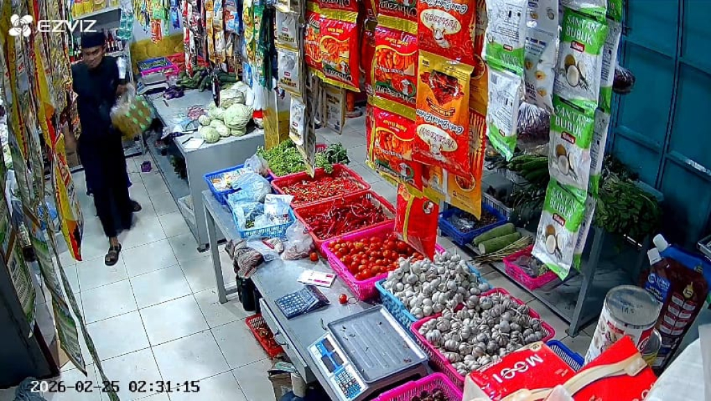 Aksi pria itu terekam kamera pengawas (CCTV) toko yang menjual berbagai sembako, sayur, ikan, buah dan lainnya.
