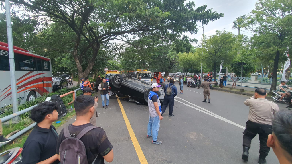 selalu.id – Sebuah mobil Honda CRV dengan nomor polisi L 1822 CN mengalami kecelakaan lalu lintas dan terbalik di Jalan Raya Wisma Pagesangan, tepat di exit tol depan Hotel Namira pada hari Jumat (6/3) sekitar pukul 16.51 WIB. Korban tunggal dalam insiden ini, Hari Jono Muljo/Liauwe (58 tahun), dalam kondisi sadar dengan luka ringan.