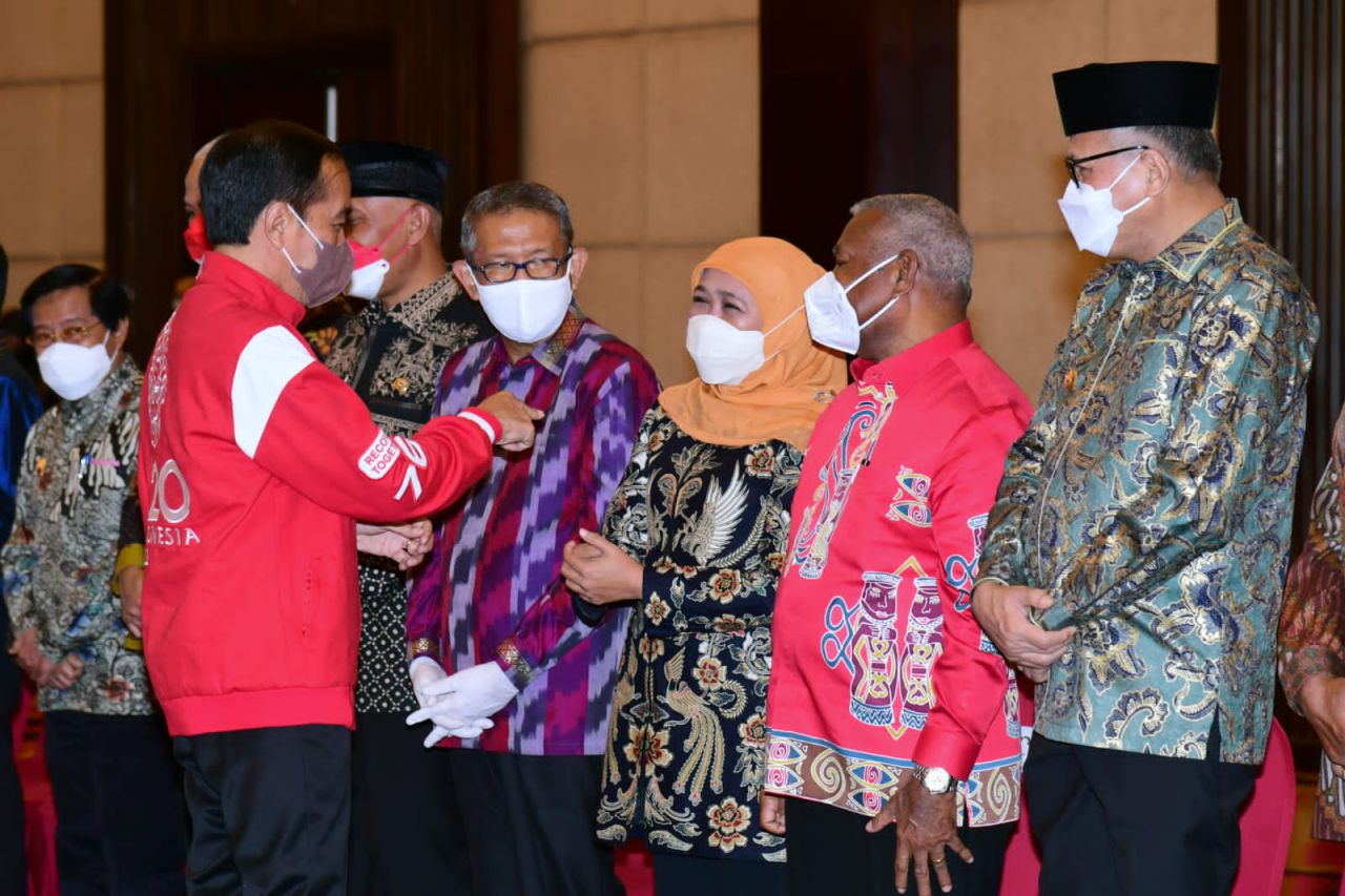 selalu.id - Gubernur Jawa Timur Khofifah Indar Parawansa menghadiri Rapat Terbatas Pengarahan Presiden Joko Widodo (Jokowi) kepada para Gubernur se-Indonesia di Hotel Novotel Balikpapan, Kalimantan Timur, Minggu (13/3/2022).