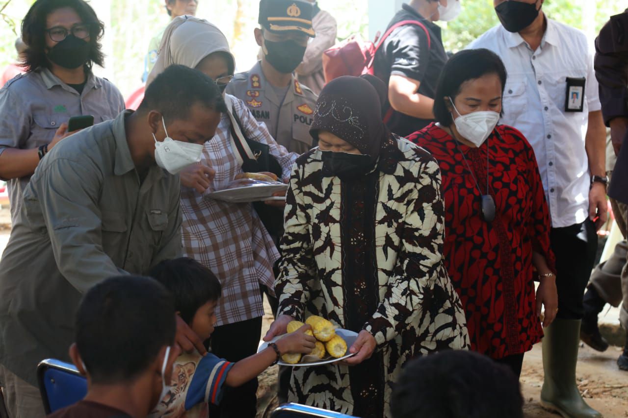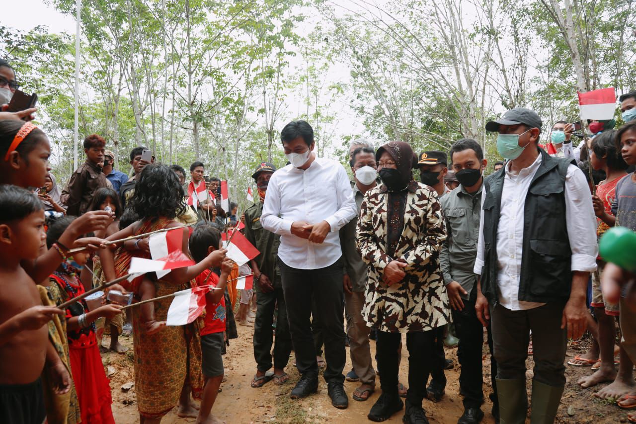 selalu.id - Kehadiran Menteri Sosial Tri Rismaharini mendapat sambutan hangat dari masyarakat Suku Anak Dalam (SAD) atau biasa disebut Orang Rimba. Mensos menyapa anak-anak yang sedang belajar membaca dan berhitung dengan mengambil tempat di rumah panggung.