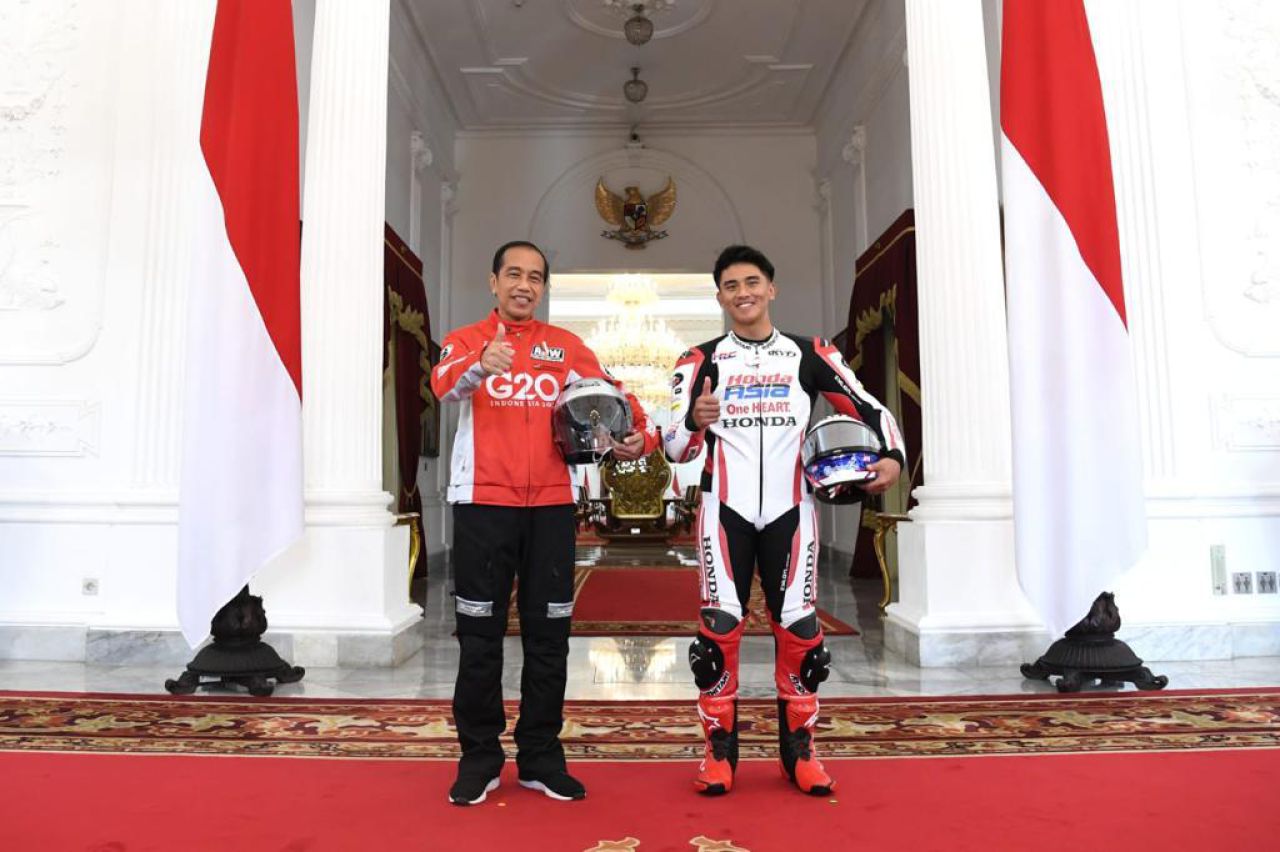 "Pembalap kita, Mario ikut di Moto3. Itu bibit, kita harapkan bisa naik terus ke tahap selanjutnya dan ke MotoGP," kata Presiden Joko Widodo.