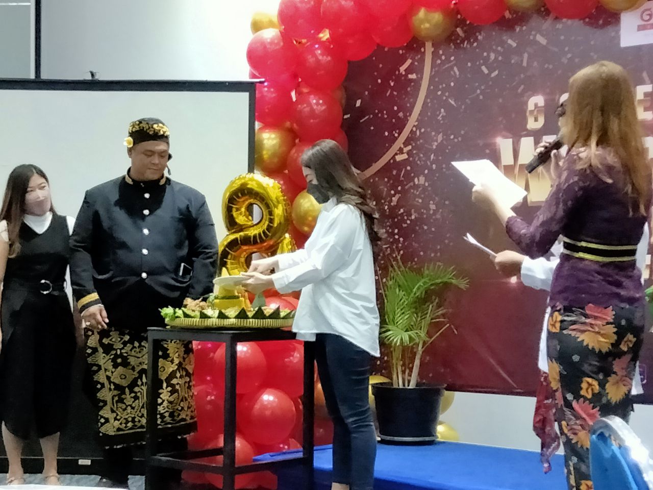 Tak hanya membuat syukuran, Manajemen mengelar aksi cukur gundul karyawan sebagai bentuk empati terhadap Yayasan Kanker dan disabilitas.