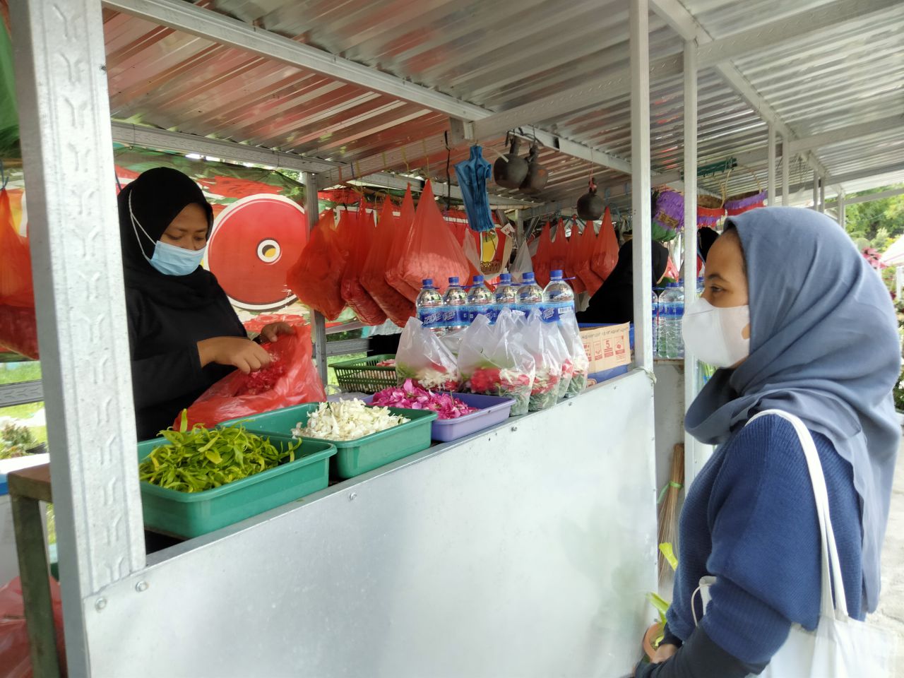 Azizah pun juga mengaku, dirinya menaikkan harga dagangannya seperti bunga pacar air dari harga Rp 20 ribu menjadi Rp 60 ribu satu kresek merah besar.