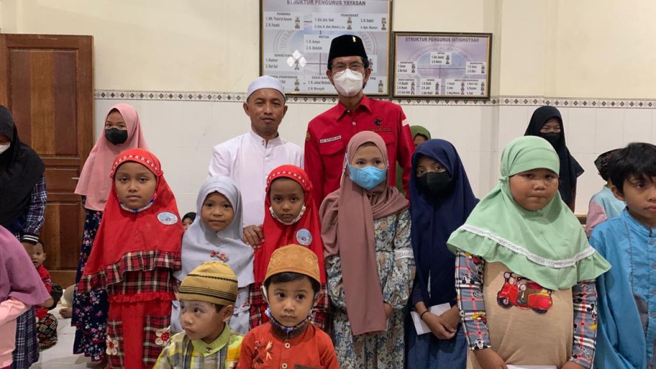 selalu.id - PDI Perjuangan Kota Surabaya menggelar buka puasa bersama dan santunan kepada puluhan anak-anak yatim piatu, di bawah naungan Yayasan Darul Alawi Al-Hasany, di kawasan Jalan Pulo Wonokromo, Senin (4/4/2022).