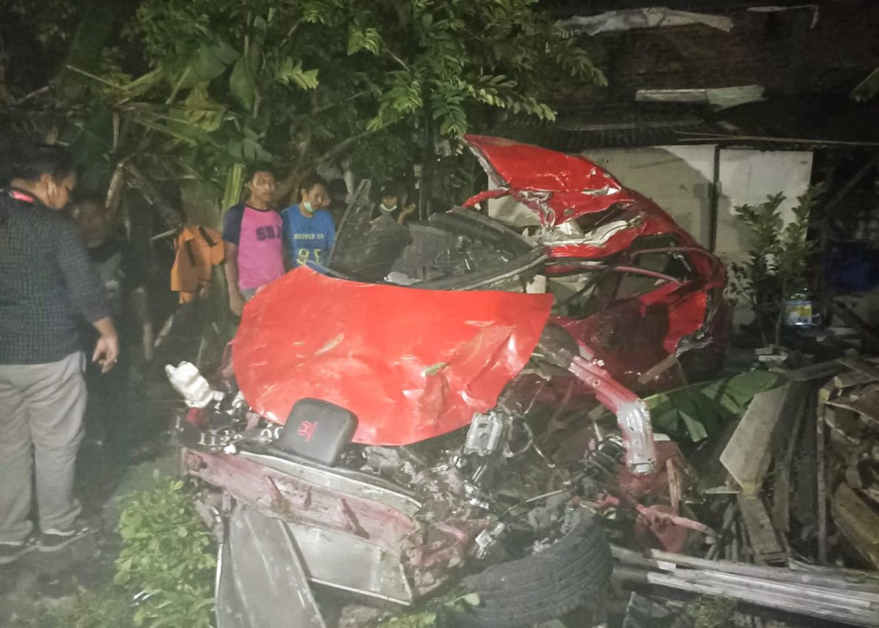 Diketahui mobil Brio yang ditabrak hancur hingga tak berbentuk. Jenazah ketiga pengendara langsung dievakuasi oleh petugas kepolisian ke RS Bhayangkara. (Ade/SL1)