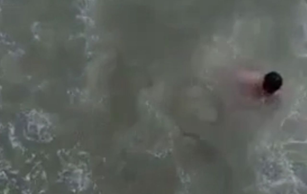 Kemudian adan video kedua yang merekam video tersebut, saat pria itu sedang berenang bawah Jembatan Suramadu itu.