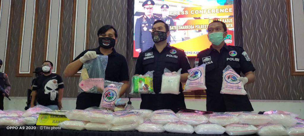 Prestasi Kapolrestabes Surabaya Kombes Pol Sandi Nugroho, Kasat Resnarkoba AKBP Memo Ardian dan anggotanya itu langsung diapresiasi Kapolda Jatim Irjen Pol Fadil Imran yang memimpin langsung pers rilis kasus itu di Mapolrestabes Surabaya, Selasa (12/5/2020).
