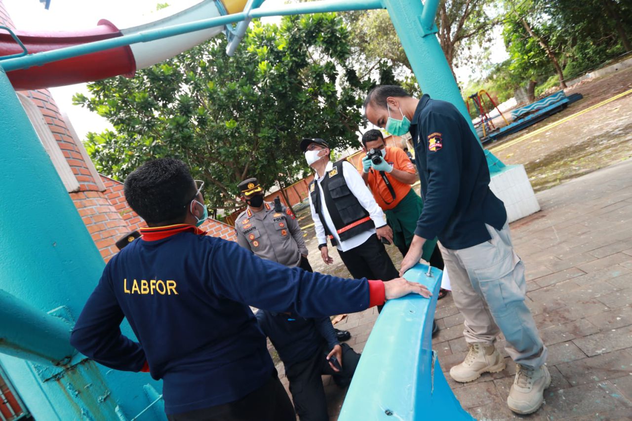 Tim Labfor Polda Jatim langsung melihat dan meriksa Tempat Kejadian Perkara (TKP) wahana renang di Waterpark Kenjeran Surabaya.