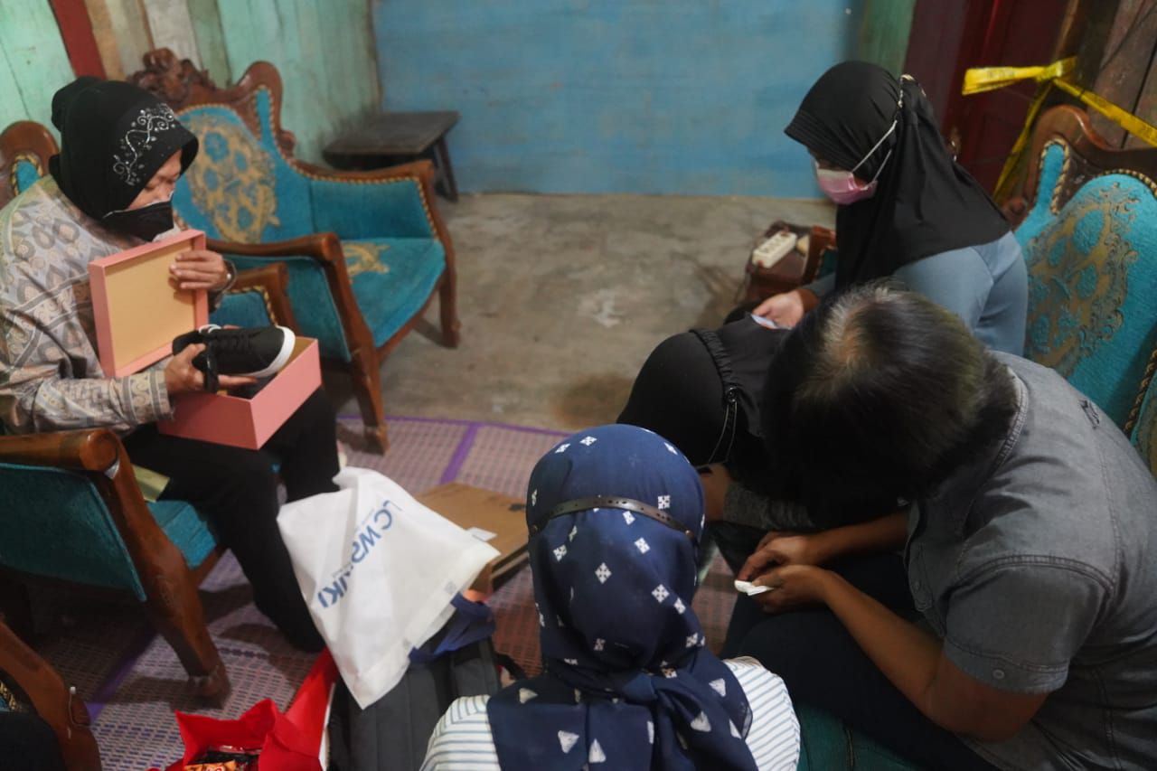 Dalam kesempatan bertemu keluarga Ar, Mensos menyerahkan bantuan berupa kebutuhan pokok, uang duka Rp2.000.000, tabungan pendidikan Rp5.000.000, modal usaha peternakan lele Rp3.000.000 dan peralatan sekolah (tas, sepatu, alat tulis, buku, laptop).