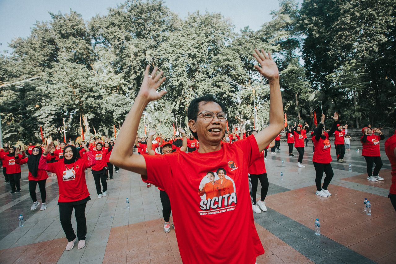 "Semua kader dan pengurus antusias, all out, untuk melakukan senam SICITA," ujar Mohammad Jupri, Ketua PAC PDIP Genteng, yang menggelar kegiatan di pelataran parkir THR.