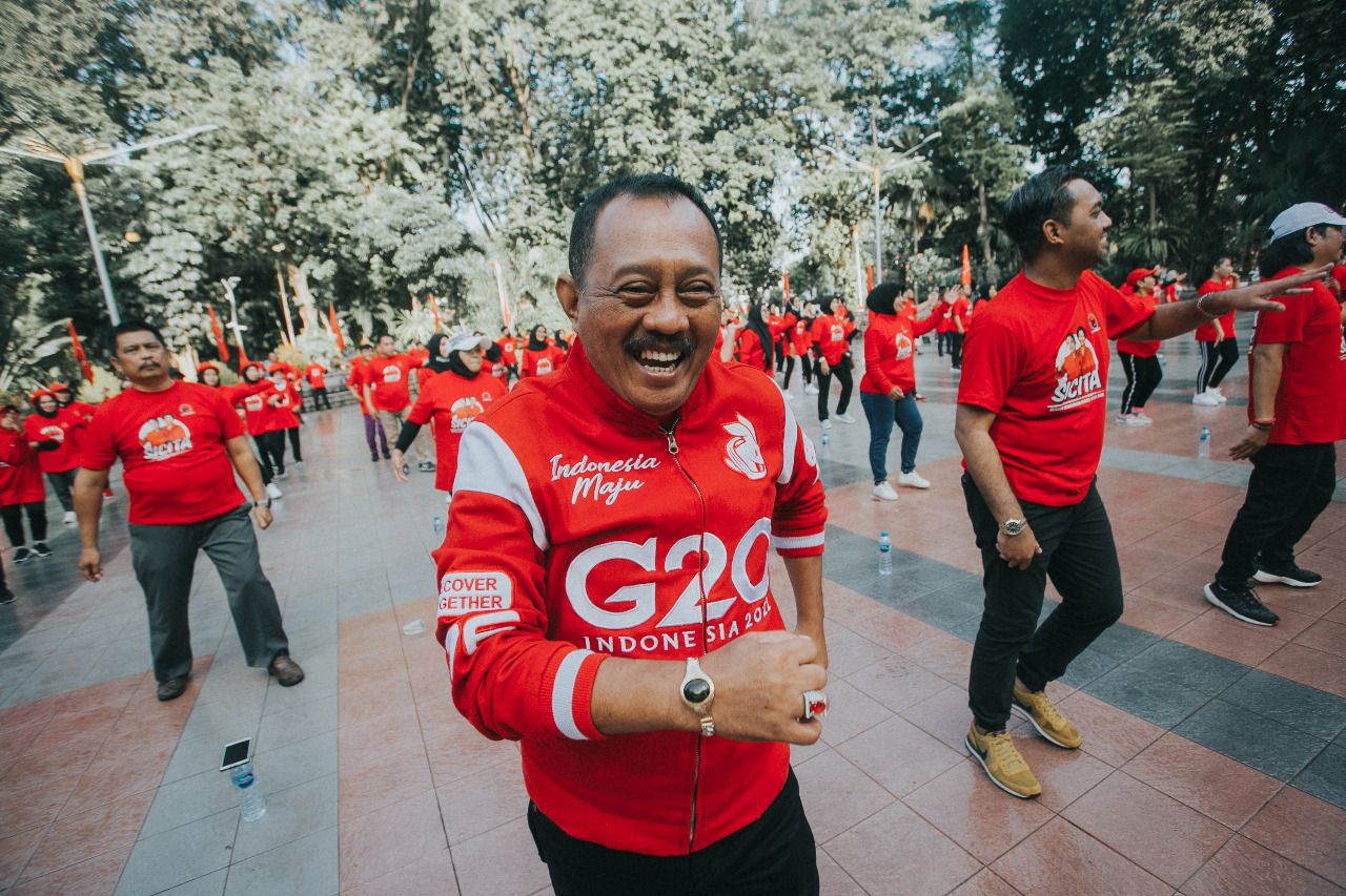 Wali Kota Eri Cahyadi tidak bisa hadir mengikuti senam SICITA, karena pada saat yang sama harus memimpin upacara peringatan Hari Kebangkitan Nasional di Balai Kota Surabaya.