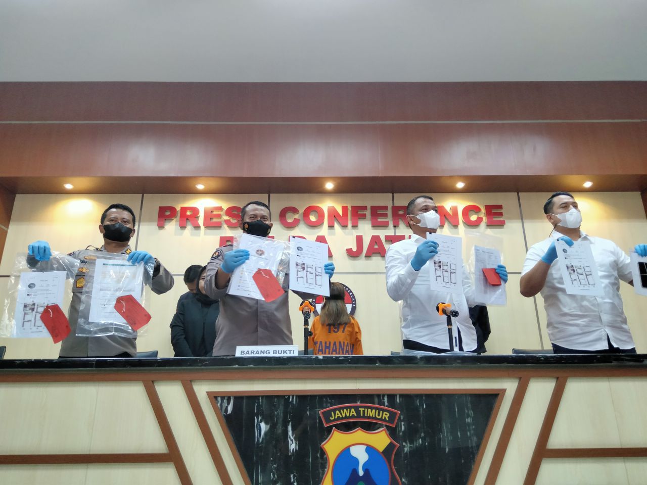 "Saat ini korban yang melapor berjumlah 13 orang, pengakuan tersangka ada 150 orang. Bagi korban silahkan melaporkan ke Polda Jatim,"kata Wildan saat Press Conference di Polda Jatim, Selasa (31/5/2022).