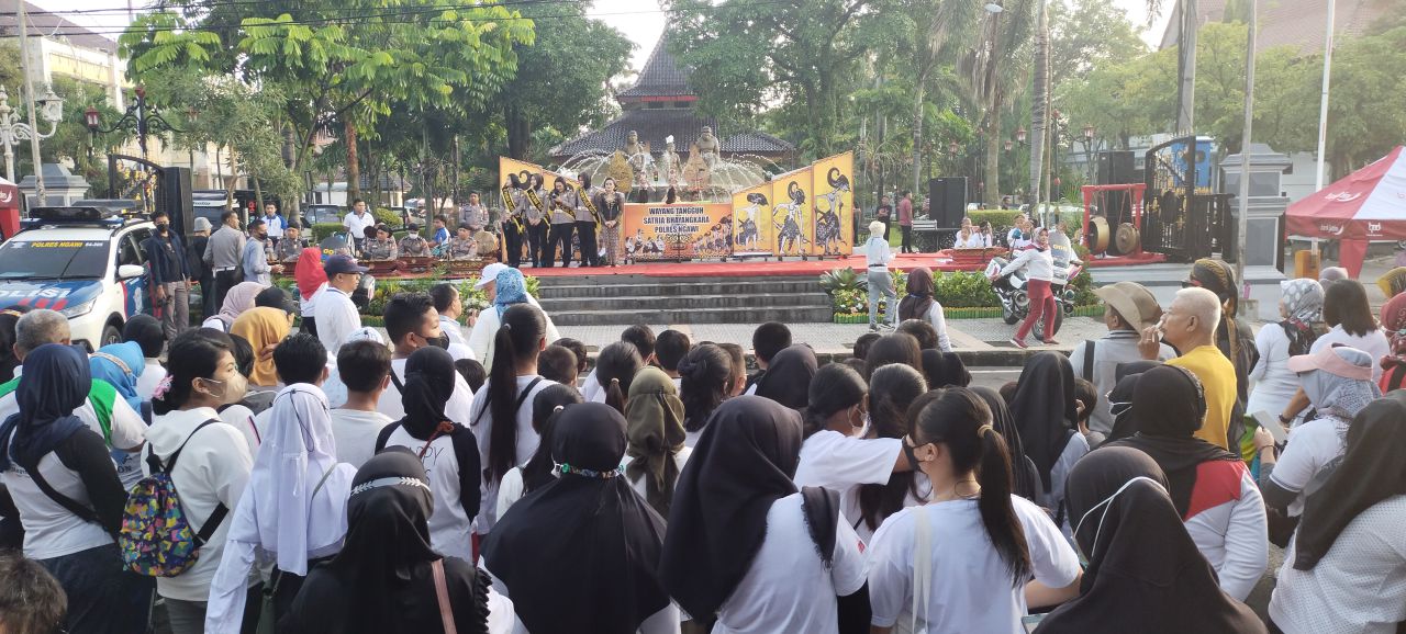 Bekerjasama dengan Polres Ngawi, acara pembukaan Car Free Day dimeriahkan dengan pementasan wayang yang diperankan oleh anggota polisi.