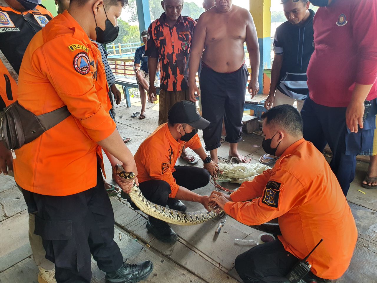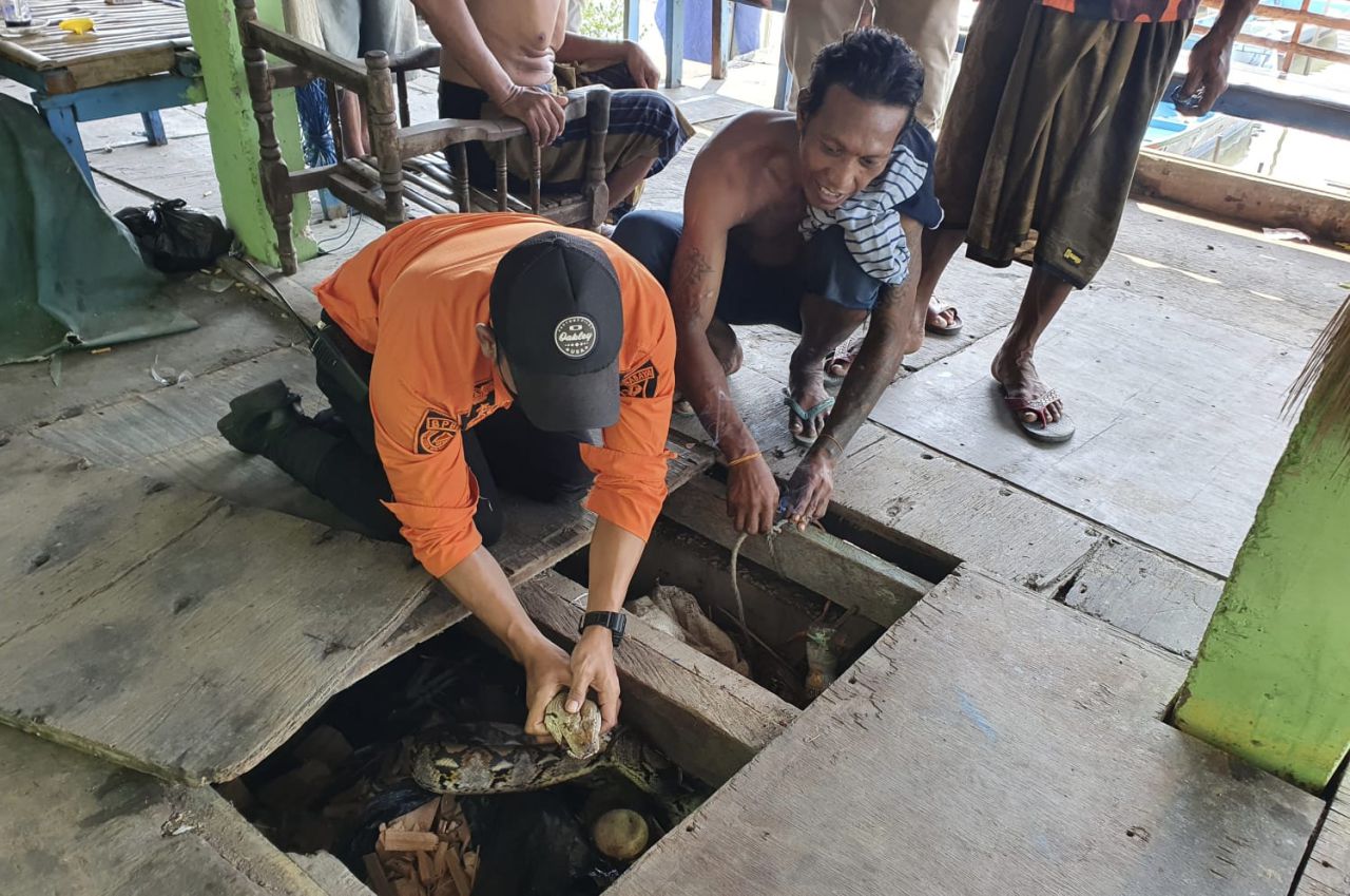 Subekhan menambahkan, untuk mengamankan ular sebelum diserahkan ke pihak yang berwenang, dirinya bersama para nelayan berinisiatif menempatkan ular Sanca tersebut dibawah lantai papan rumah, agar tidak kabur.