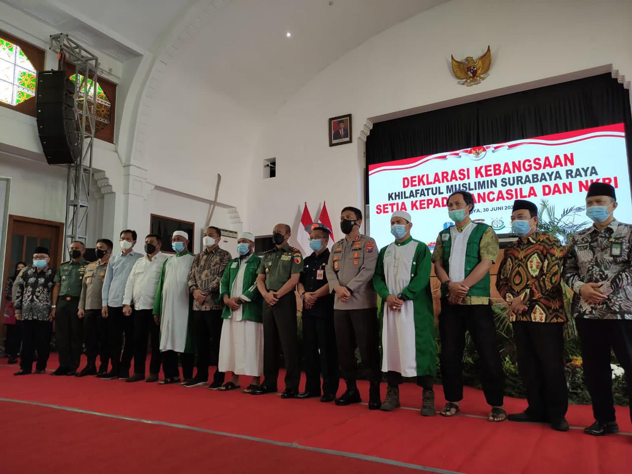 selalu.id - Forum Koordinasi Pimpinan Daerah (Forkompinda) Jawa Timur menggelar deklarasi kebangsaan bersama Khilafatul Muslimin Surabaya Raya.