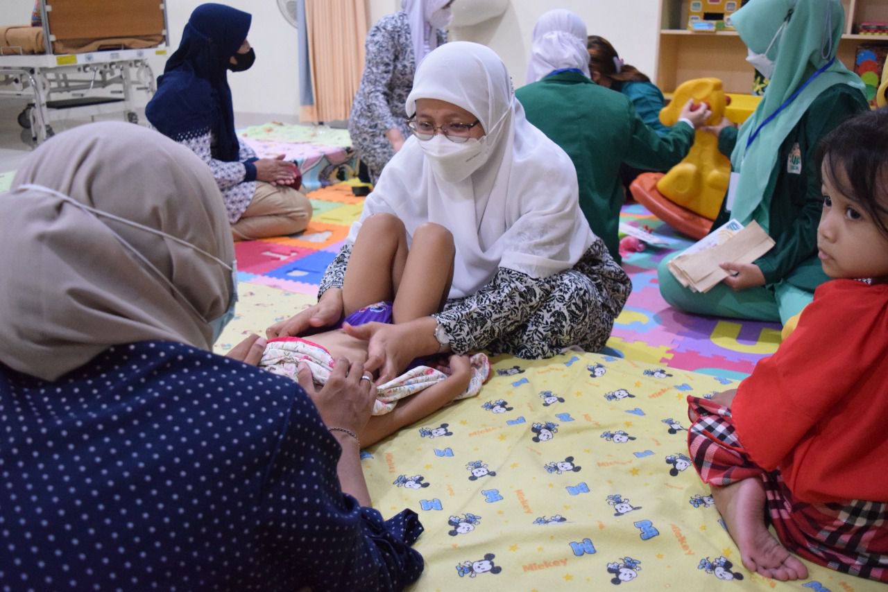 Selain periksan kehamilan dan senam yoga hamil, puluhan anak dan bayi juga menerima pemijatan yang dilakukan oleh para mahasiswa. Pemijatan dilakukan untuk menstimulus perkembangan dan pertumbuhan anak dan bayi.