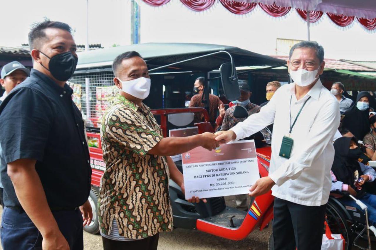Bantu aksesibilitas berupa yaitu 7 unit kursi roda standar, 1 unit kursi roda cerebral palsy, 1 unit motor roda tiga, dan 1 unit hearing aid dengan nilai total keseluruhan sebesar Rp.66.444.600,-. bagi Pemerlu Pelayanan Kesejahteraan Sosial di Kabupaten Subang.