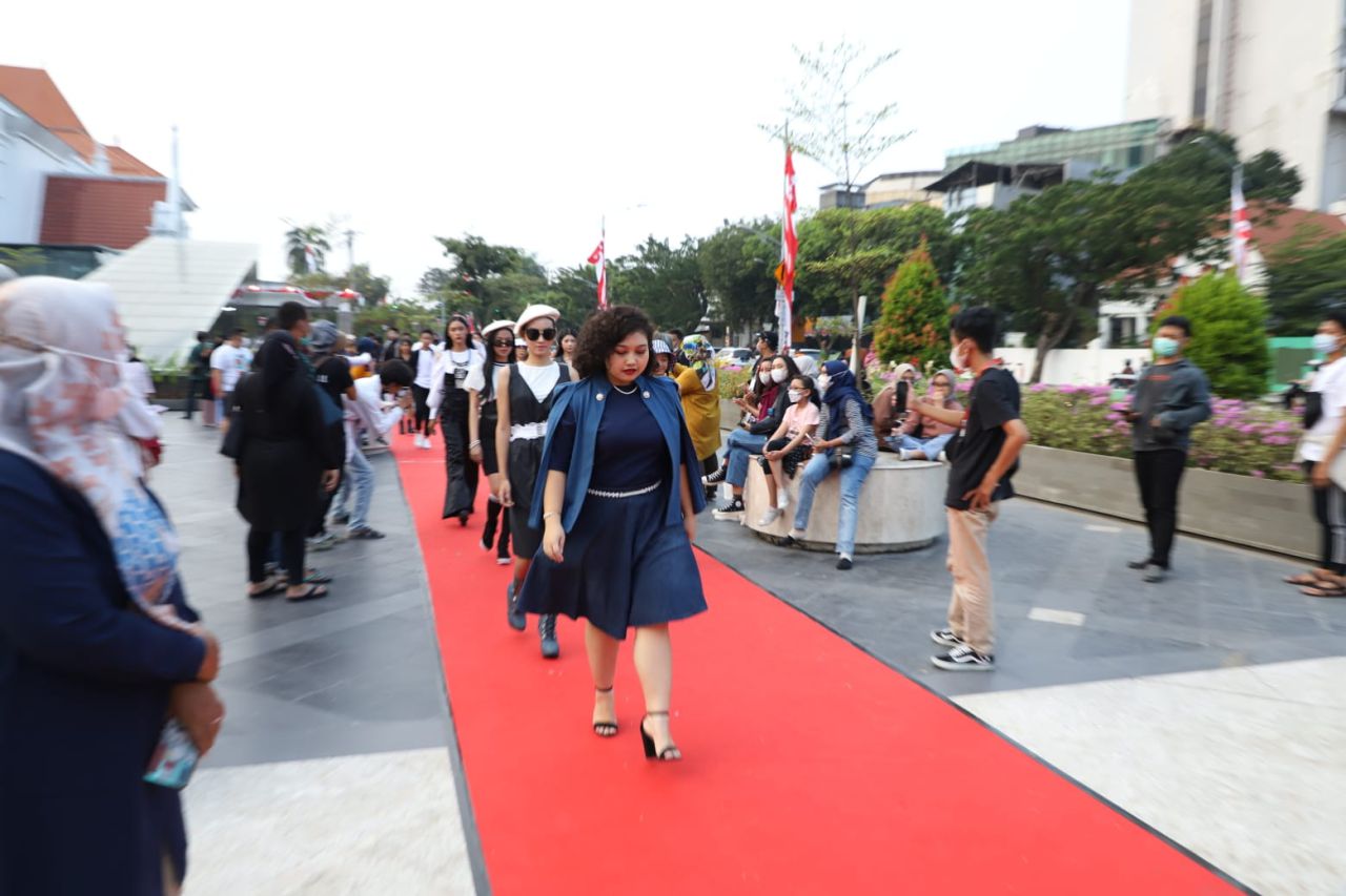 selalu.id - Ratusan warga Surabaya antusias mengunjungi acara Fashion Show yang bertajuk 'Mejeng Nang Suraboyo' di Alun-Alun Balai Pemuda, Sabtu (7/8/2022).