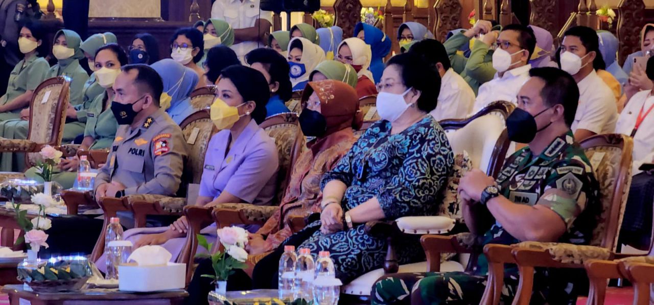 Megawati bicara dan memotivasi para peserta luring dan daring yang hadir agar memberi gizi yang terbaik bagi setiap keluarga.
