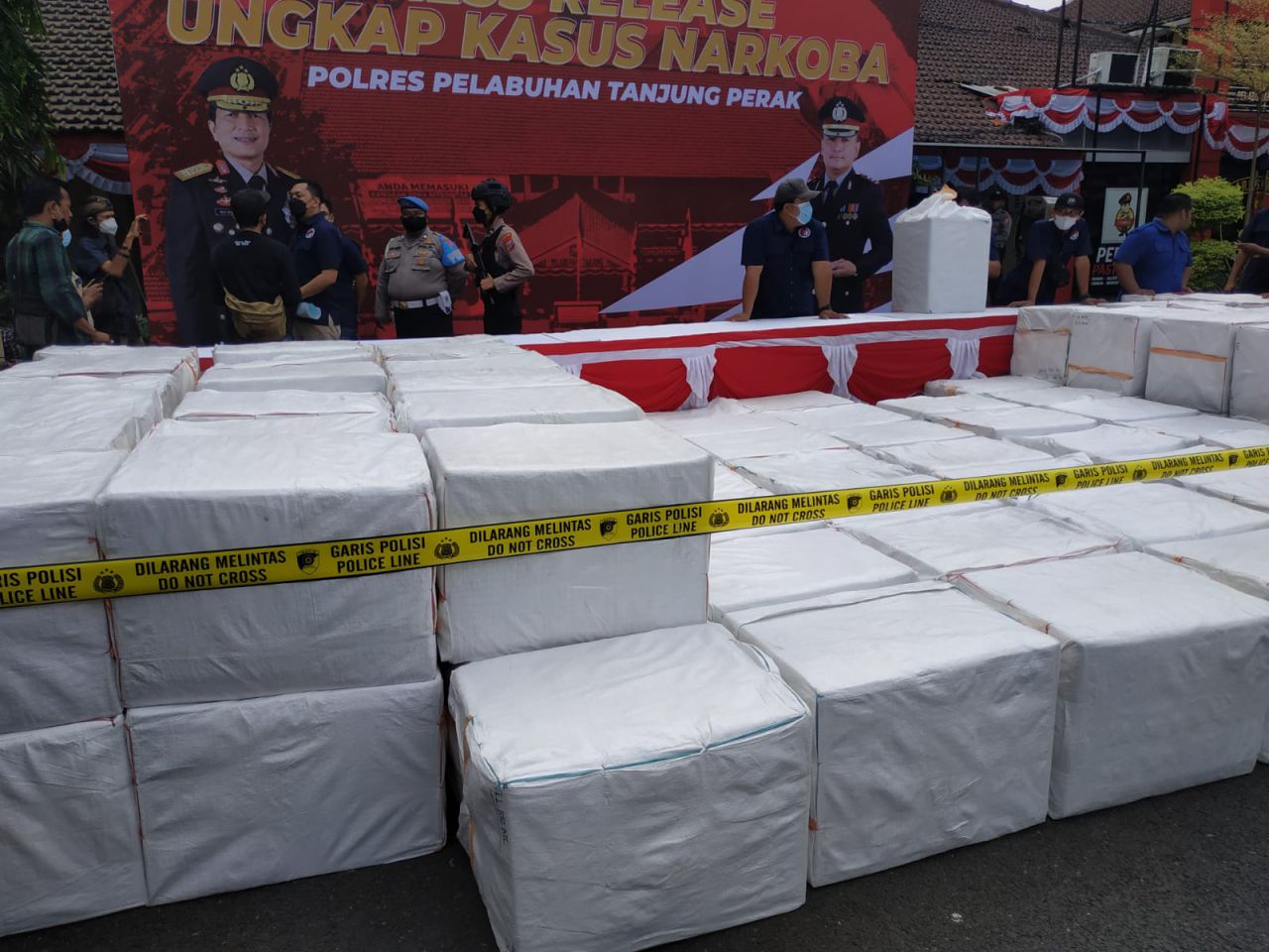 Tecatat polisi berhasil mengamankan barang bukti sebnyak 36,2276 kg sabu, 4,999 butir pil ekstasi dan 11.509.000 juta butir pil koplo.
