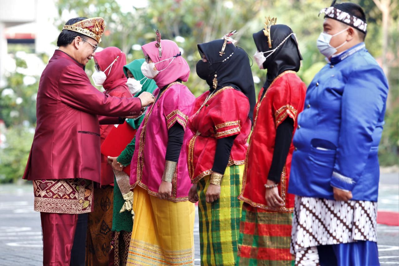 Berbaju Adat, Kemensos Gelar Upacara HUT RI Diiringi Marching Band Disabilitas