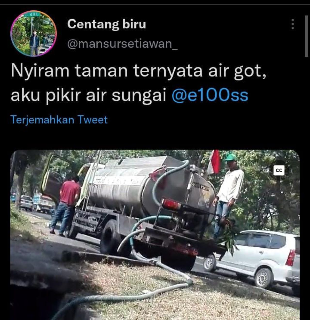 selalu.id - Sebuah akun twitter memnunggah video yang memperlihatkan truk penyiram tanaman yang disebut milik Pemkot Surabaya sedang mengambil air dari selokan atau got.