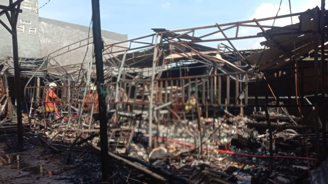 "Stand Gorengan , Es buah dan soto terbakar habis posisi di tengah - tengah, sedangkan stand persewaan mobil terdampak atap," keterangan command center 112.